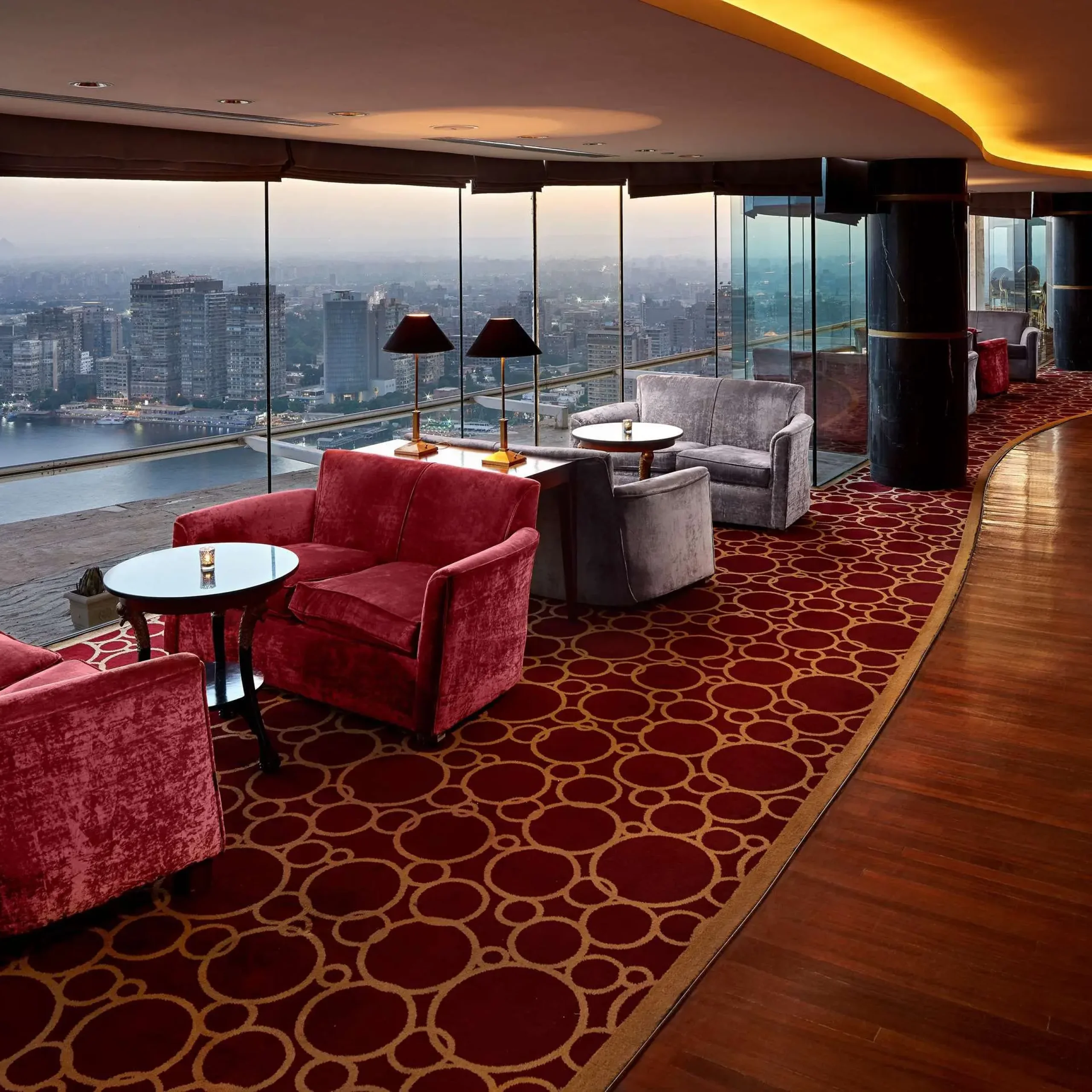 Overlooking the Nile River, find us in the center of Cairo. Historic and cultural attractions are nearby, including The Egyptian Museum and Cairo Opera House, two kilometers away. We offer an array of event space and dining options, from our floating restaurant on the Marquise cruise boat to our top-floor revolving restaurant. Please note this is an alcohol-free hotel.